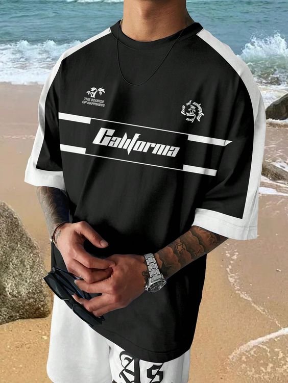 California Black white contrast drop shoulder